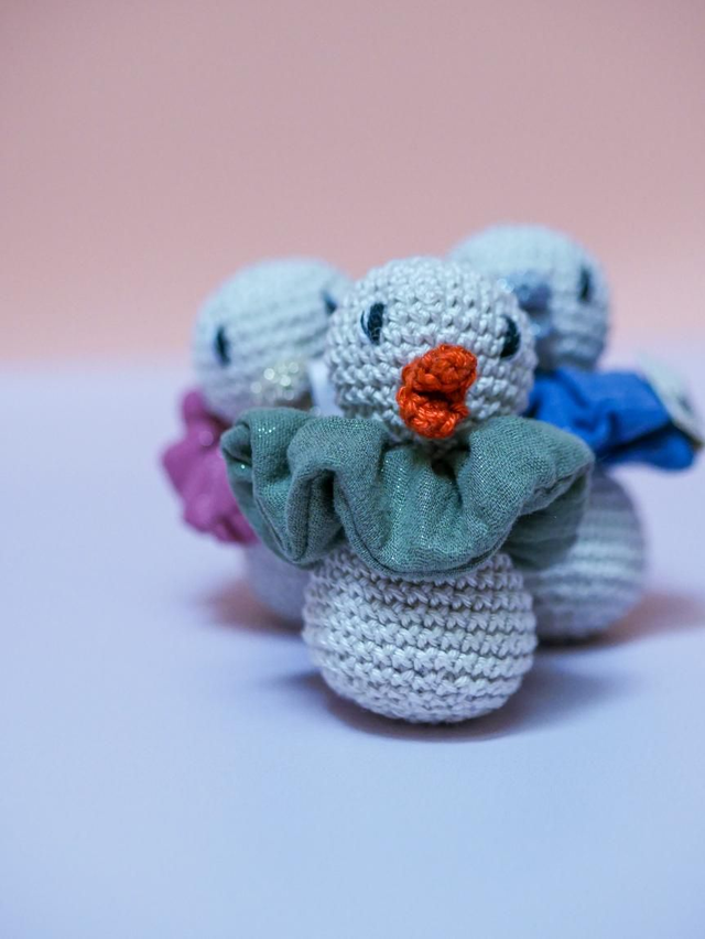 Le petit canard de Noël, idéal en décoration ou compagnon d'enfant. Il est accompagné de sa collerette chouchou amovible.